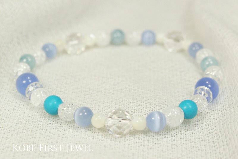 【ギフト最適品】アクアマリン・ターコイズ・キャッツアイブレスレット ★12月誕生石★海の青、空の青。ブルーグラデーション《 kfjbr0036 》【クリスタル神戸】