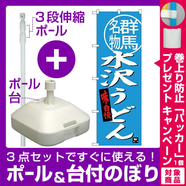 【3点セット】のぼりポール(竿)と立て台(16L)付ですぐに使える(新)のぼり旗 水沢うどん群馬名物 (SNB-3948) [プレゼント付](全国特産品・ご当地品/関東)