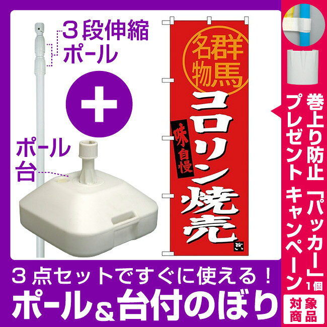 【3点セット】のぼりポール(竿)と立て台(16L)付ですぐに使える(新)のぼり旗 コロリン焼売 群馬名物 (SNB-3949) [プレゼント付](全国特産品・ご当地品/関東)
