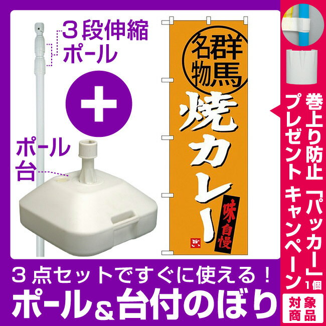 【3点セット】のぼりポール(竿)と立て台(16L)付ですぐに使える(新)のぼり旗 焼カレー 群馬名物 (SNB-3951) [プレゼント付](全国特産品・ご当地品/関東)
