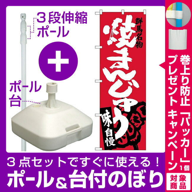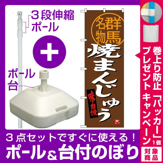 【3点セット】のぼりポール(竿)と立て台(16L)付ですぐに使えるのぼり旗 群馬名物 焼まんじゅう (SNB-3954) [プレゼント付](全国特産品・ご当地品/関東)