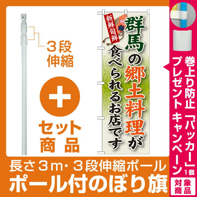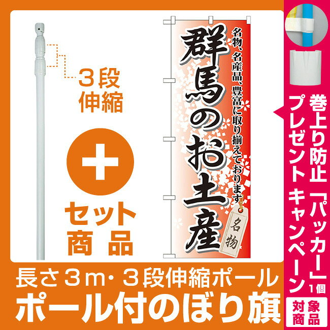 【セット商品】3m・3段伸縮のぼりポール(竿)付 のぼり旗 群馬のお土産 (GNB-827)(全国特産品・ご当地品/関東)