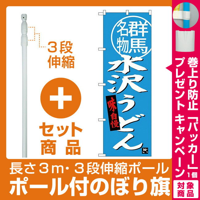 【セット商品】3m・3段伸縮のぼりポール(竿)付 (新)のぼり旗 水沢うどん群馬名物 (SNB-3948) [プレゼント付](全国特産品・ご当地品/関東)