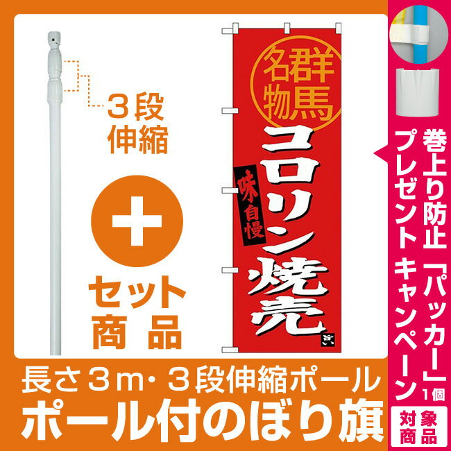 【セット商品】3m・3段伸縮のぼりポール(竿)付 (新)のぼり旗 コロリン焼売 群馬名物 (SNB-3949) [プレゼント付](全国特産品・ご当地品/関東)