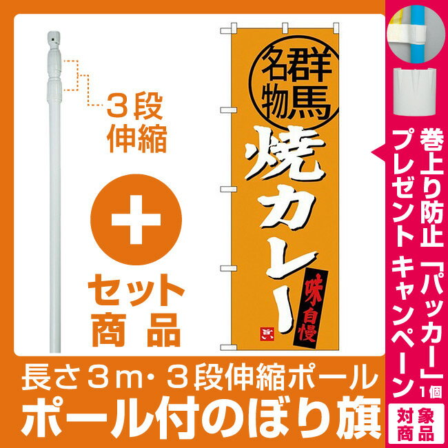 【セット商品】3m・3段伸縮のぼりポール(竿)付 (新)のぼり旗 焼カレー 群馬名物 (SNB-3951) [プレゼント付](全国特産品・ご当地品/関東)