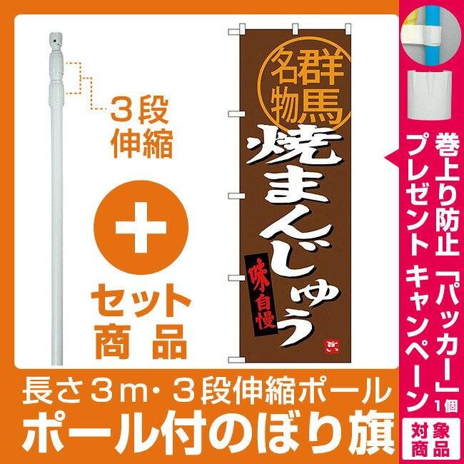 【セット商品】3m・3段伸縮のぼりポール(竿)付 のぼり旗 群馬名物 焼まんじゅう (SNB-3954) [プレゼント付](全国特産品・ご当地品/関東)