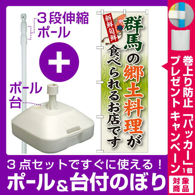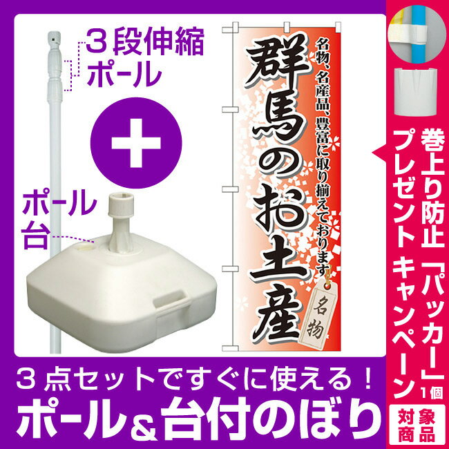 【3点セット】のぼりポール(竿)と立て台(16L)付ですぐに使えるのぼり旗 群馬のお土産 (GNB-827) [プレゼント付](全国特産品・ご当地品/関東)