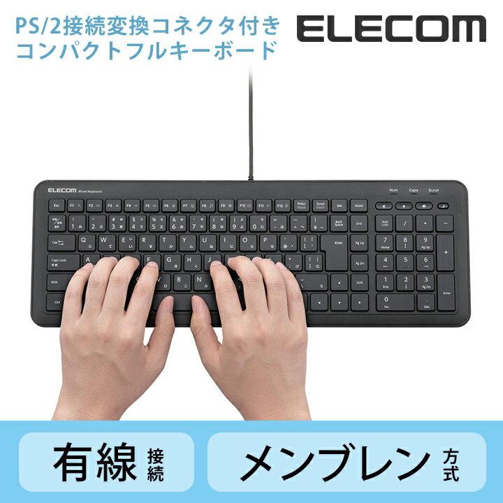エレコム コンパクト有線キーボード/Windows用/メンブレン式/USB-PS/2変換コネクタ付 TK-FCM074PBK