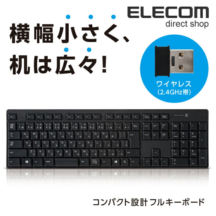 エレコム 2.4GHzワイヤレスキーボード コンパクト設計 フルキーボード メンブレン式 ブラック TK-FDM087TBK