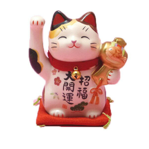開店祝い 花 招き猫 置物 まねきねこ 開店祝い めでたづくし 右手で金運も招く招福大開運招き猫(ちりめん首輪付 3号)高さ9cm【まねき猫 専門店 開運グッズ 猫 雑貨 ネコ グッズ ねこ ちりめん 外国人 お土産 開業 オープン 周年記念品】