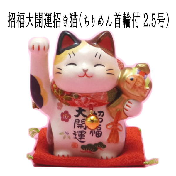 開店祝い 花 招き猫 置物 まねきねこ 開店祝い めでたづくし 右手で金運も招く招福大開運招き猫(ちりめん首輪付 2.5号)【まねき猫 専門店 開運グッズ 猫 雑貨 ネコ グッズ ねこ グッズ ちりめん 外国人 お土産 風水 風水グッズ】