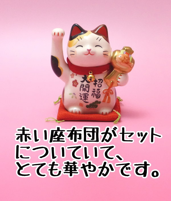 開店祝い 花 招き猫 置物 まねきねこ 開店祝い めでたづくし 右手で金運も招く招福大開運招き猫(ちりめん首輪付 3号)高さ9cm金座布団付き【あす楽】【まねき猫 専門店 開運グッズ 猫 雑貨 ネコ グッズ ねこ ちりめん 外国人 お土産 開業 オープン 周年記念品】