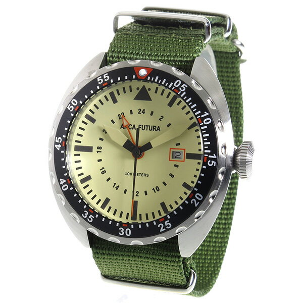 サイズ(約)H43×W43×D12mm(ラグ、リューズは除く)、重さ(約)87g、腕周り最大(約)20cm、最小(約)13.5cm素材ステンレス(ケース)、ナイロン(ベルト)仕様クオーツ、10気圧防水、カレンダー(日付)、24時間計、GMT機能、カラー:アイボリー(文字盤)、グリーン(ベルト)付属品BOX、保証書、取扱説明書保証期間1年間アルカフトゥーラ ARCA FUTURA クオーツ メンズ 腕時計 3750IV1 アイボリーアルカ フトゥーラ ARCAFUTURA クオーツ メンズ 時計 ウォッチ ミリタリーイタリア語で「未来への箱舟」を意味する アルカフトゥーラは、価格、品質、デザイン等、時計に関する全ての要素を腕時計専門のプロダクトチームが徹底的に調査、研究し繰り出される日本メーカーのオリジナルブランドです。